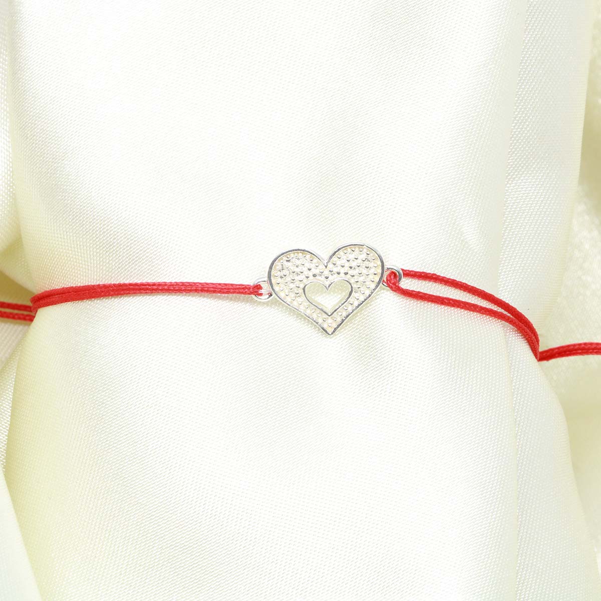 Bratara Argint Snur Rosu Inima