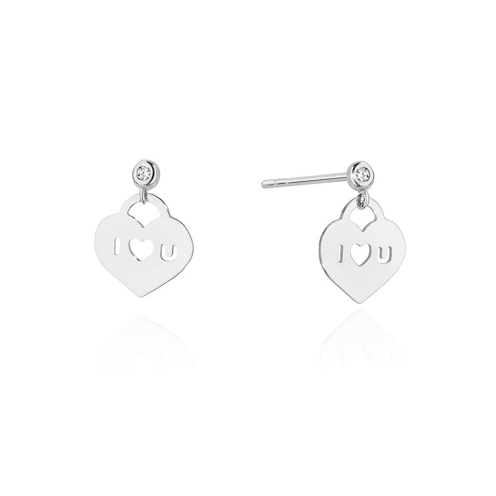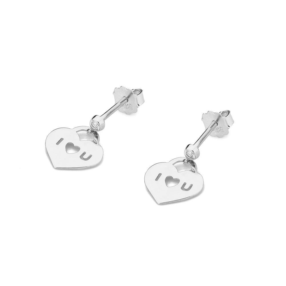 Cercei Aur Alb 14k Inima cu Diamant de 0.03ct