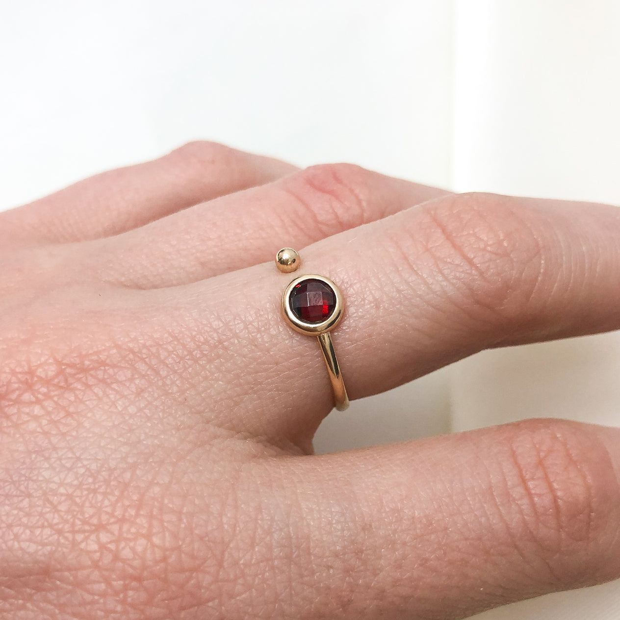 Inel Aur 14k Ajustabil cu Piatra Rosie