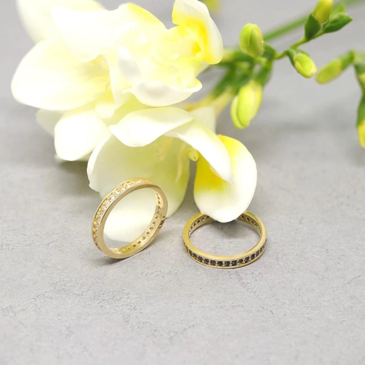 Inel Aur 14k Eternity cu Pietre Negre 3 mm