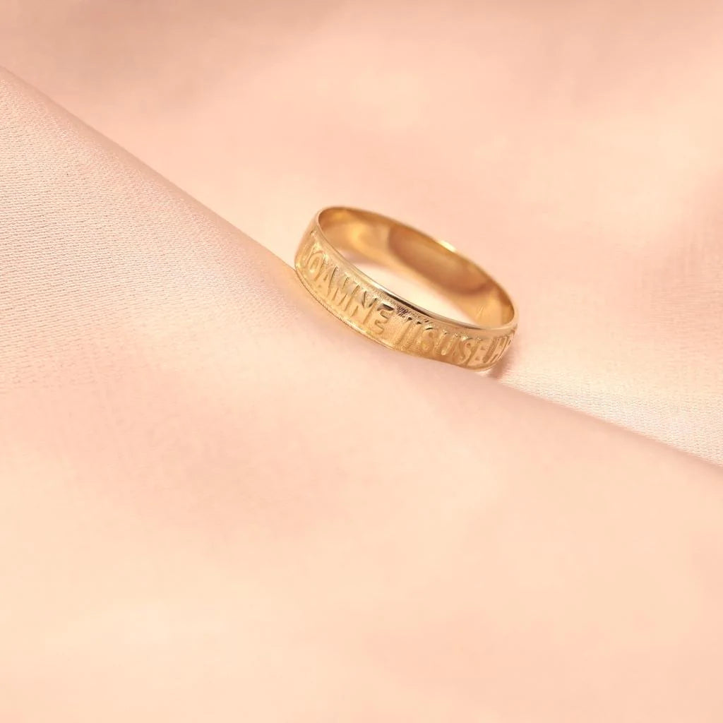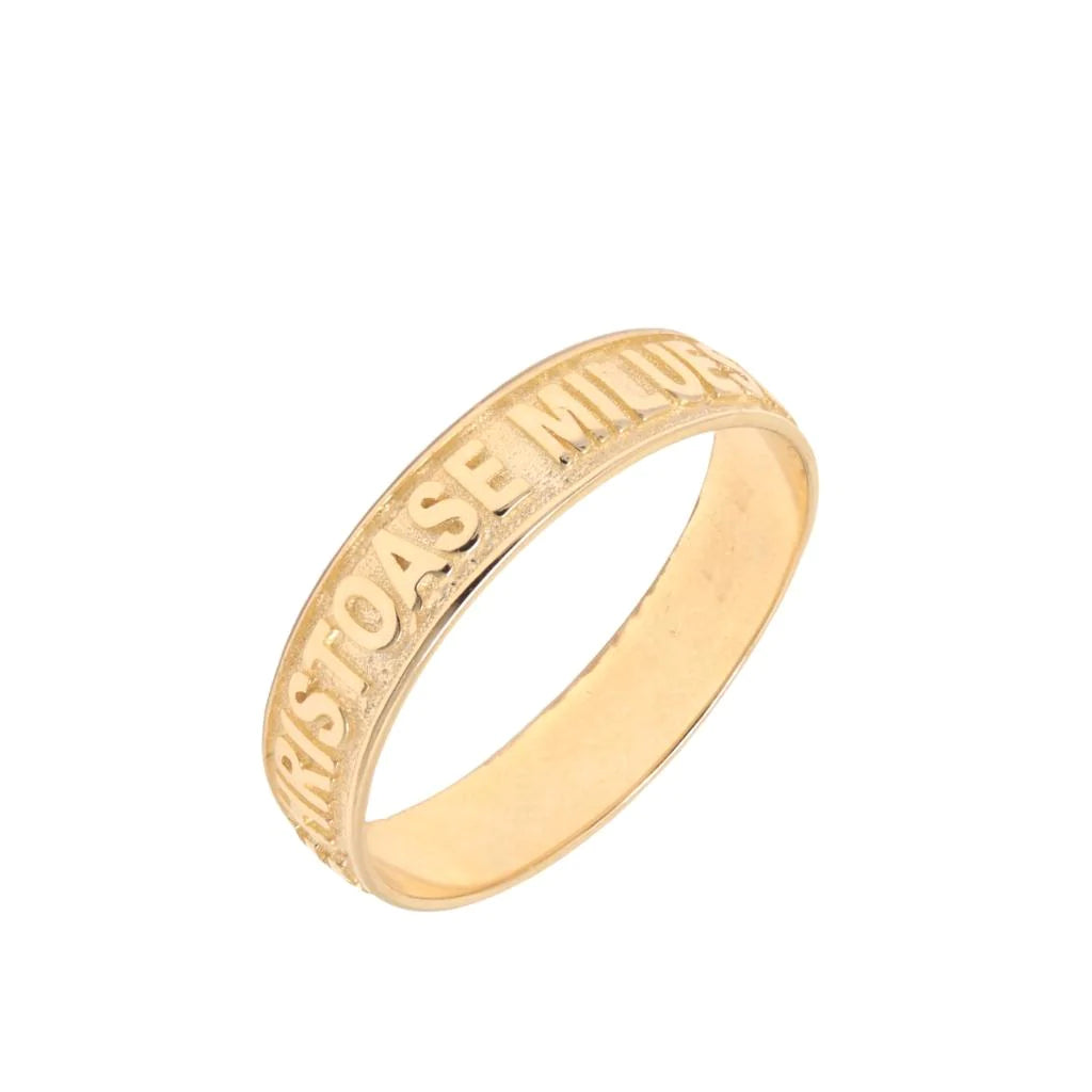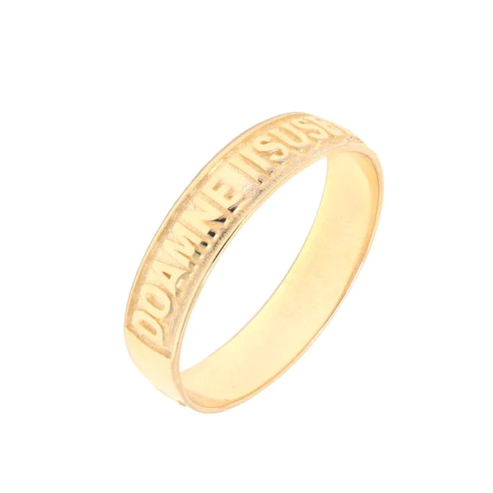 Inel Aur 14k cu motiv religios. De jur împrejurul inelului este scris “Doamne Iisuse Hristoase Miluiește-mă”.