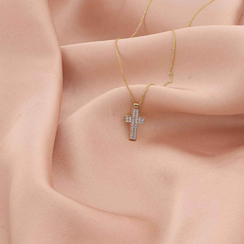 Lant Aur 14k Cruce cu Pietre Zirconia