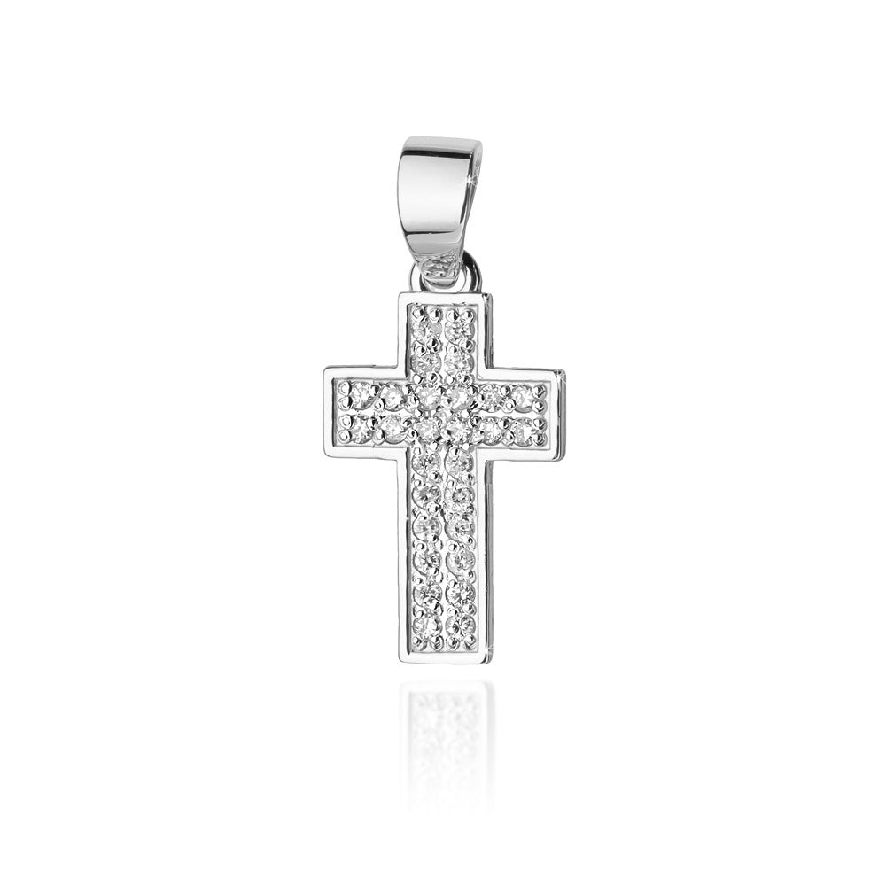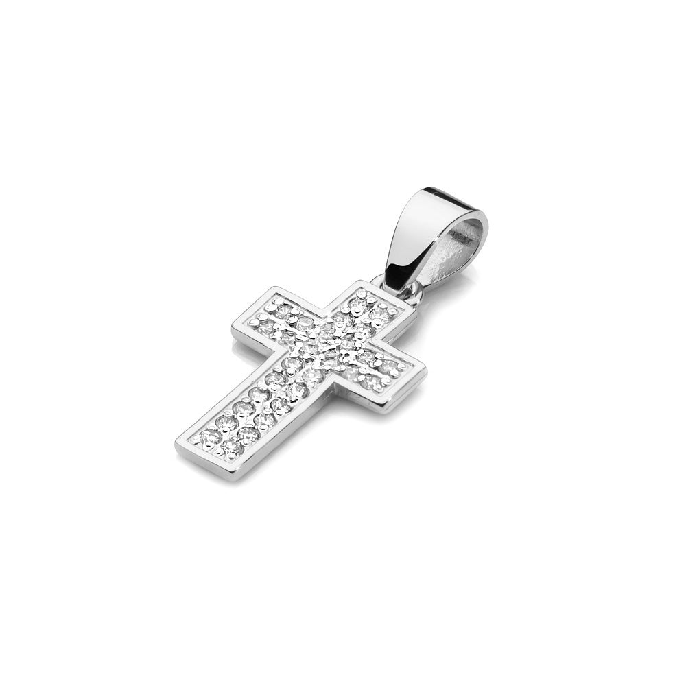 Pandantiv Cruce Aur Alb 14k cu Diamante 0.24ct